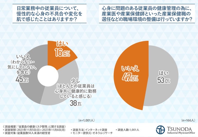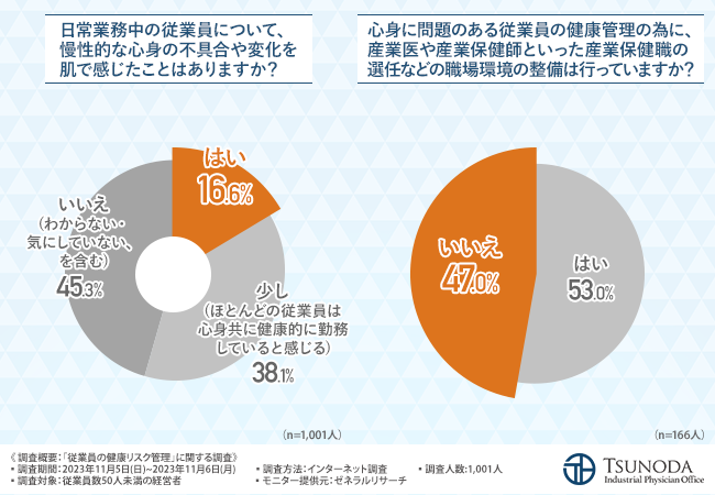 そこで今回、産業保健師業務と顧問産業医を組み合わせた産業保健サービス「レンタル産業保健室」(https://rental-sangyouhoken.com)を提供する愛知つのだ産業医事務所株式会社は、従業員数50人未満の経営者を対象に「従業員の健康リスク管理」に関する調査を実施しました。
