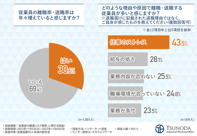 約4割の経営者が、仕事のストレスで従業員が離職していると考えていることが明らかになりました。
