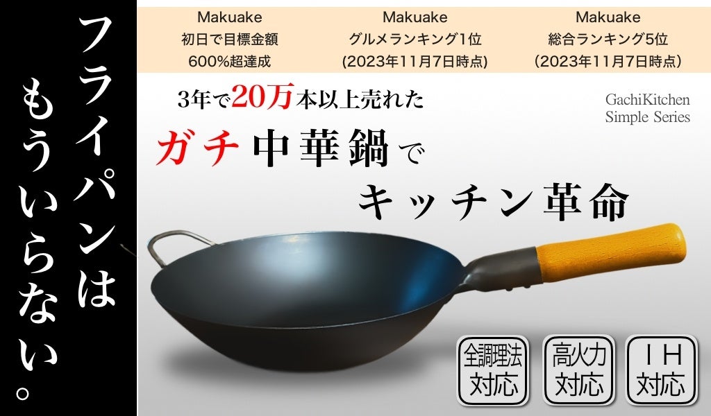 今回、日本で初めての販売がスタートしましたが、先行販売開始から初日で目標達成率600%を超えて、Makuakeのグルメランキング1位、総合ランキングで5位を記録し、現在注目の中華鍋となっています。