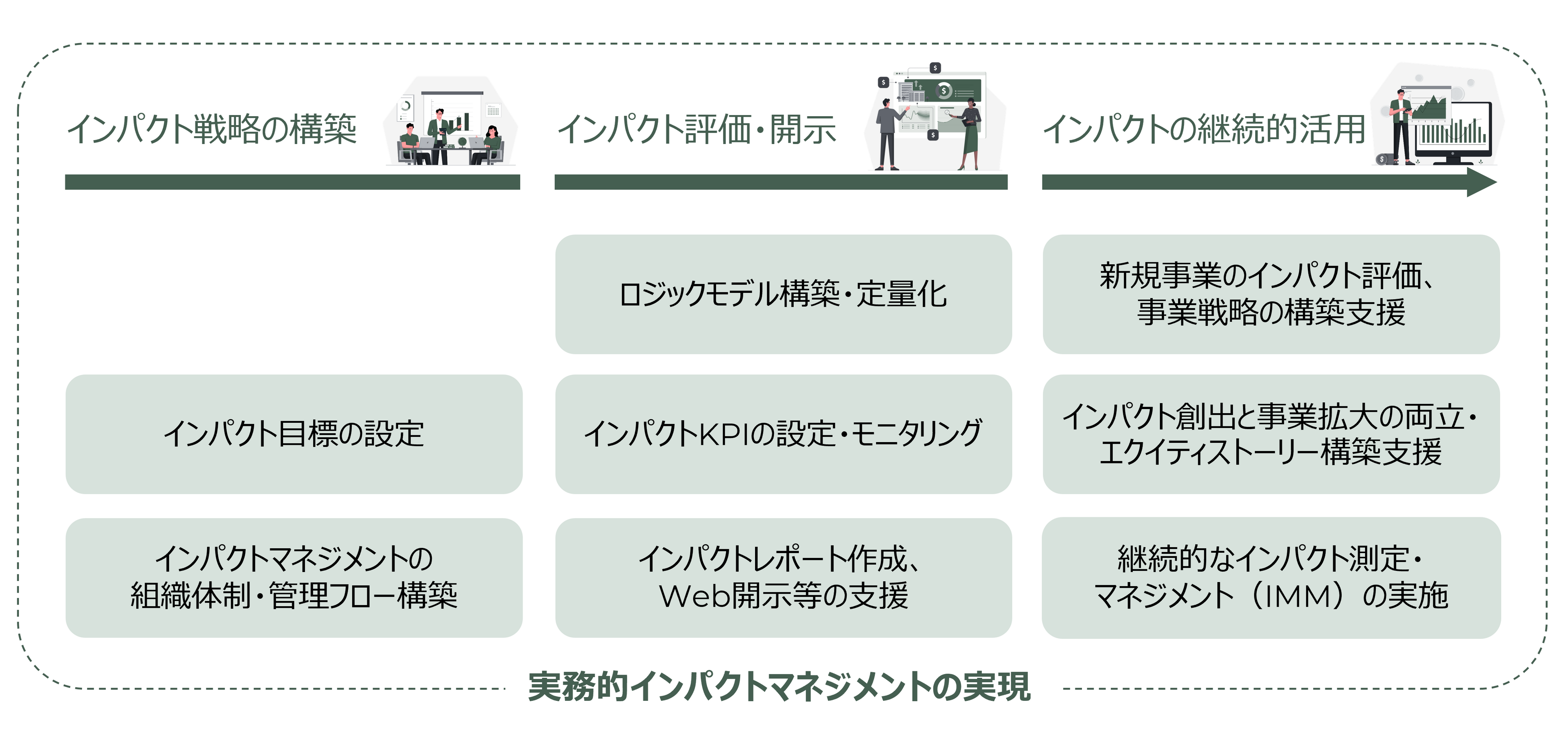 機関投資家の投資判断に資するインパクト評価を始め、インパクトマネジメントを包括的に支援