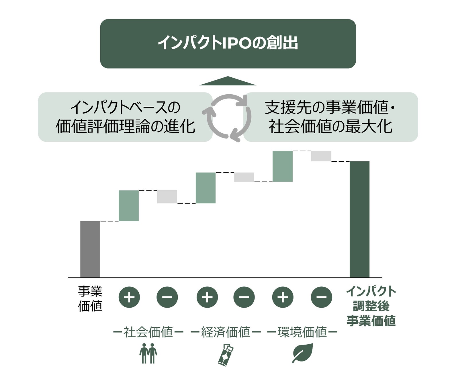 企業の社会的価値の創出と持続的な成長を仕組みと支援の両面から両立・実現することをミッションとし、インパクトマネジメントの支援(インパクトの可視化)とインパクトベースの新市場の創出・構築(インパクトの価値化)を通じて、資本主義だけに依らない「新しい価値基準の創造・構築」を目指す企業です。