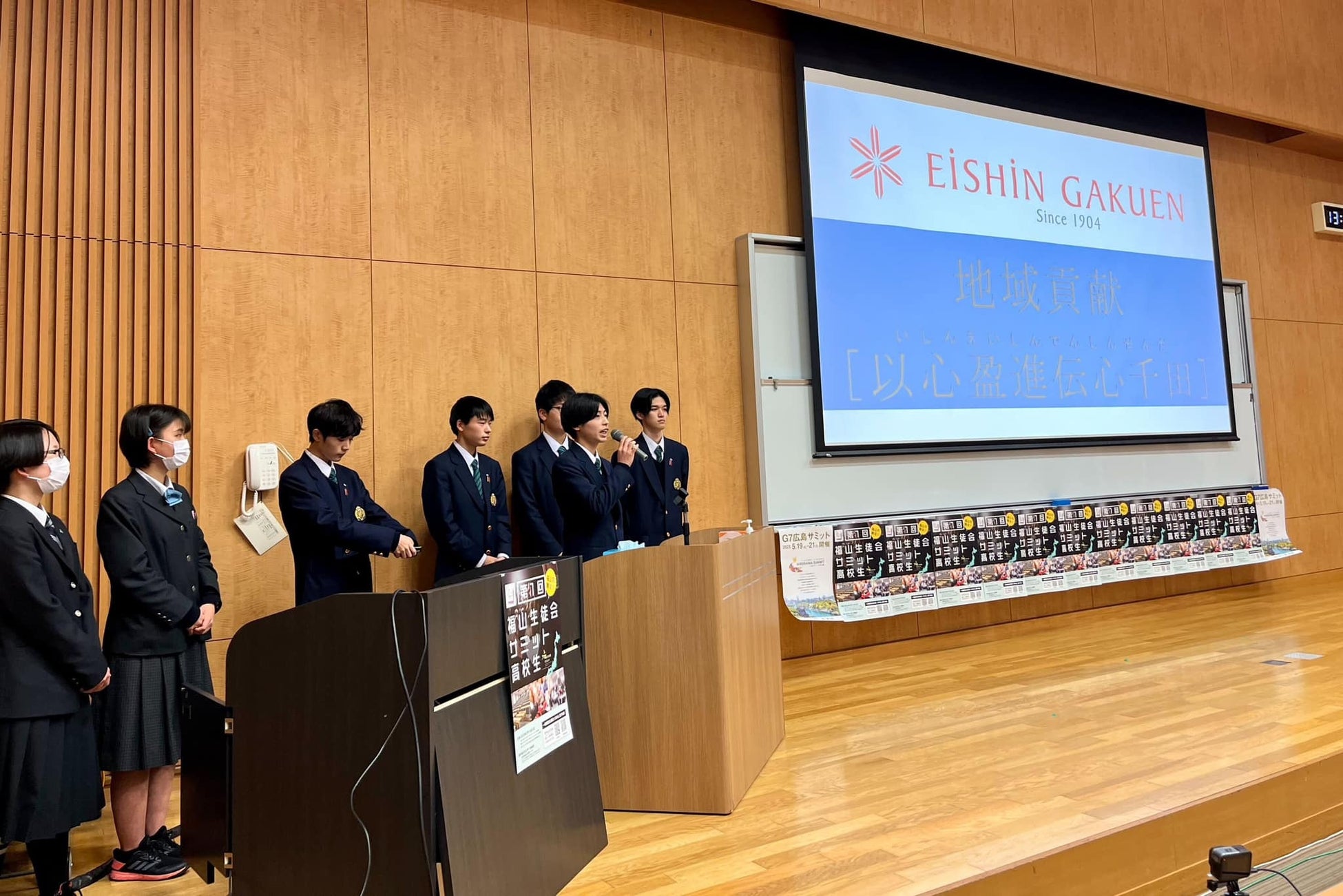 令和5年2月12日に開催した 「第1回福山生徒会サミット」では、広島県内の13校の高校生徒会、42名の生徒会メンバーが参加しました。当日は4校の高校生がプレゼンテーションを行い、自分たちが行ってきた生徒会活動をどう地域と繋げていくか、社会と関わる機会を創っていくかを考えて発表を行いました。その提案がきっかけで今回の運営・企画を行う「福山生徒会連合」の発足にも至りました。