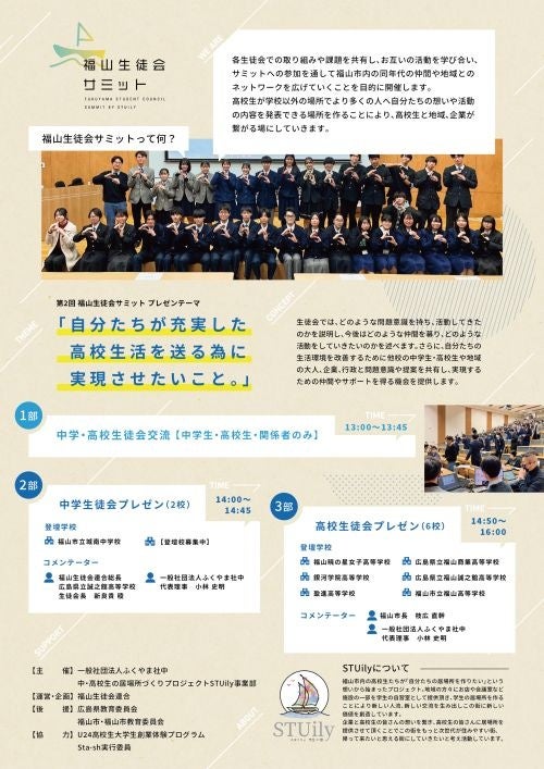 高校生が設立した「福山生徒会連合」が学校間を超えた生徒会が集まる「福山生徒会サミット」を開催。一般観覧者募集