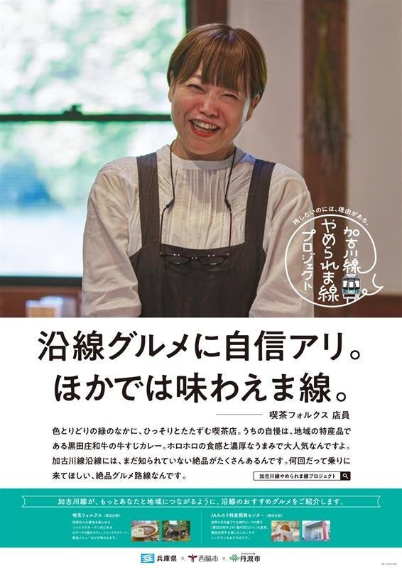 プロジェクトには、通学のため、まちづくりのため、地域を元気にするために、加古川線が日々の暮らしに“欠かせない”方、加古川線なしでは気軽に“味わえない”絶品グルメを届ける方、加古川線なしでは容易に“出会えない”風景や産業に関わる方がメンバーに協力。ポスターやインタビューでは、加古川線の現状や未来へのたくさんの想いと“やめれない”理由を語っていただきました。