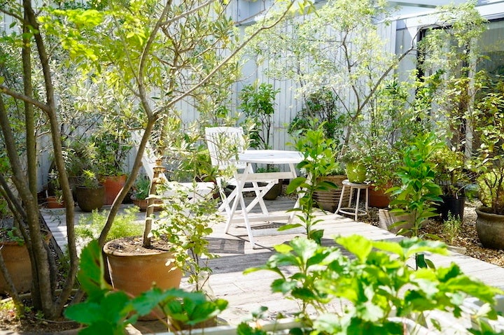 3FのCスタジオに緑豊かな20坪ほどのガーデンテラスがあります -