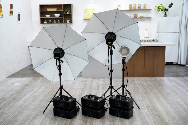スチール撮影のお客様にはストロボ(photona2000W)3台3灯無料
