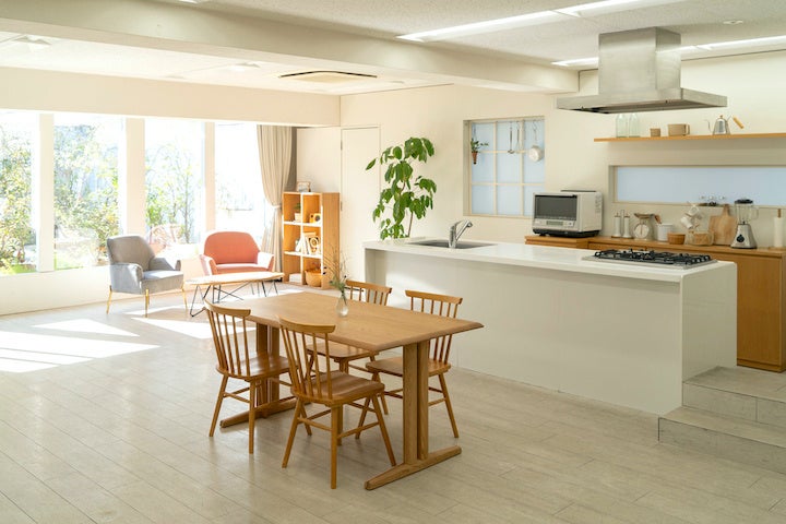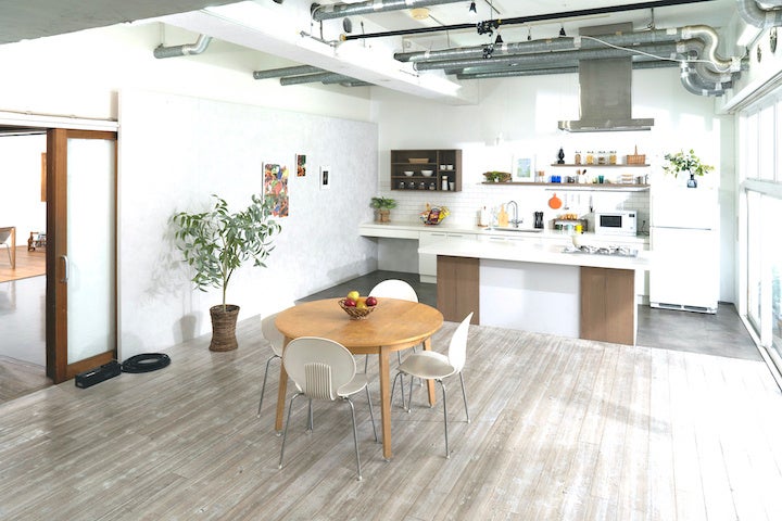 Aスタジオに隣接しているBスタジオは壁付のキッチンを備えフローリングのダイニングスペースががあります。もちろん単独のご利用もできますが、Aスタジオのサブキッチンとしてのご利用やクライアント様の控室としてのご利用も便利でおすすめしています。