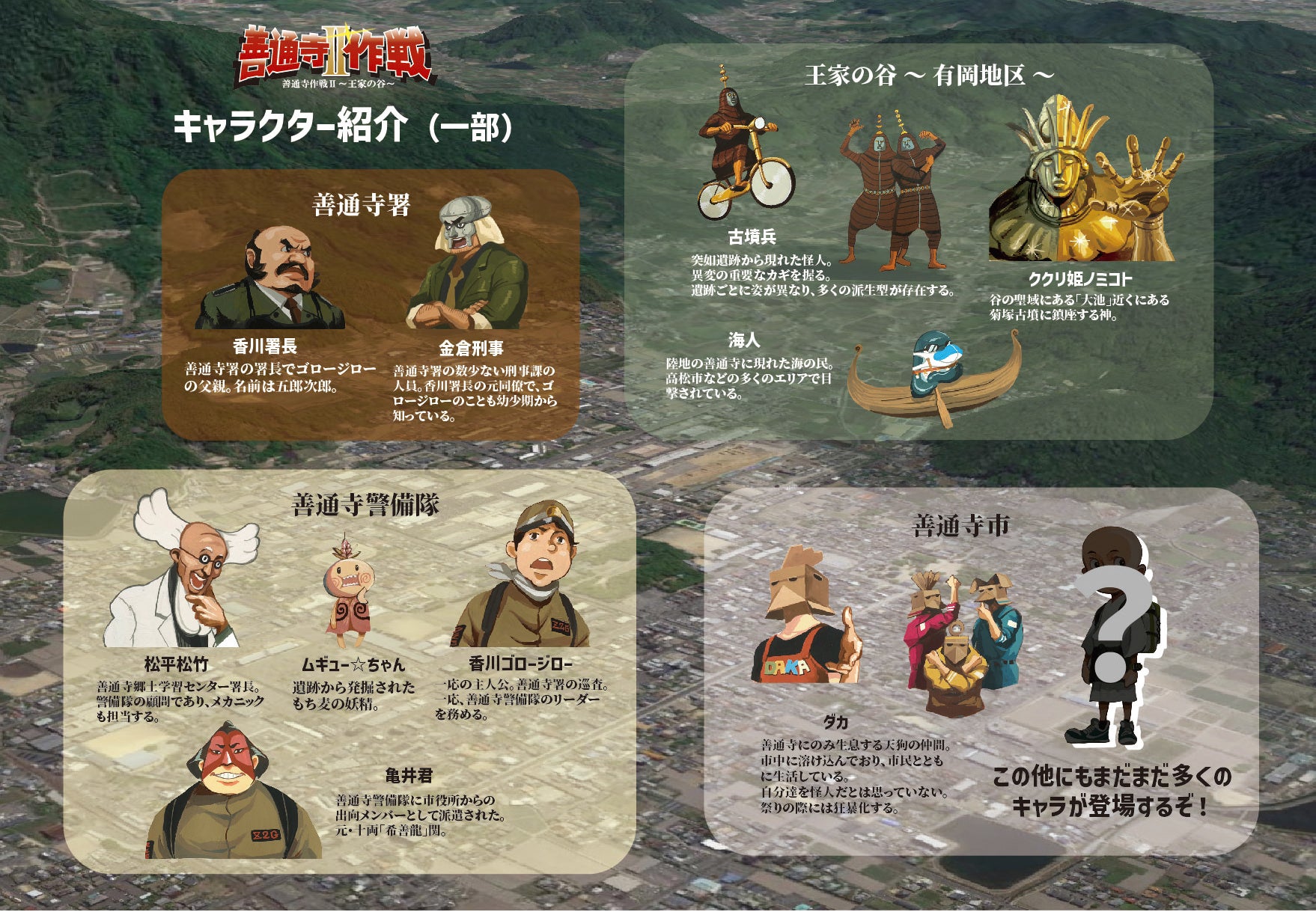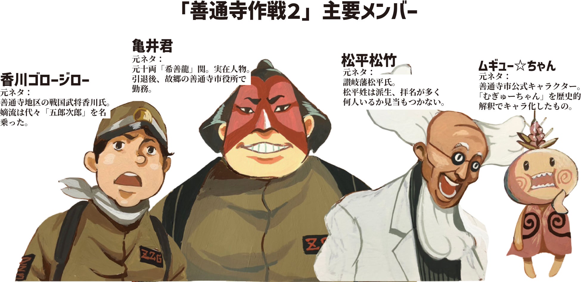 「善通寺作戦」では、善通寺市史や香川郷土史にちなんだ人物が、魅力的なキャラクターとなって登場します。