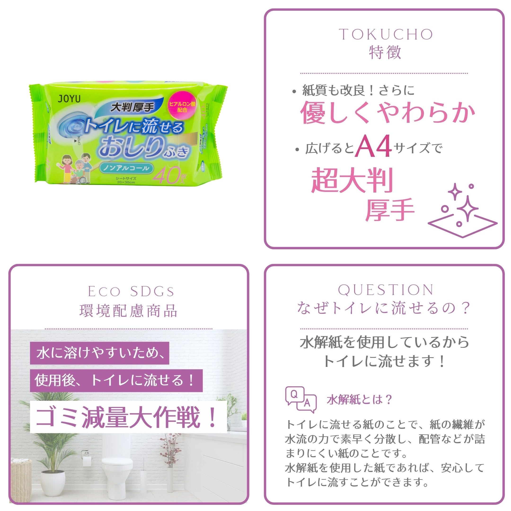 ◾️大人用介護向け 大判厚手 トイレに流せるおしりふき ノンアルコール ヒアルロン酸配合