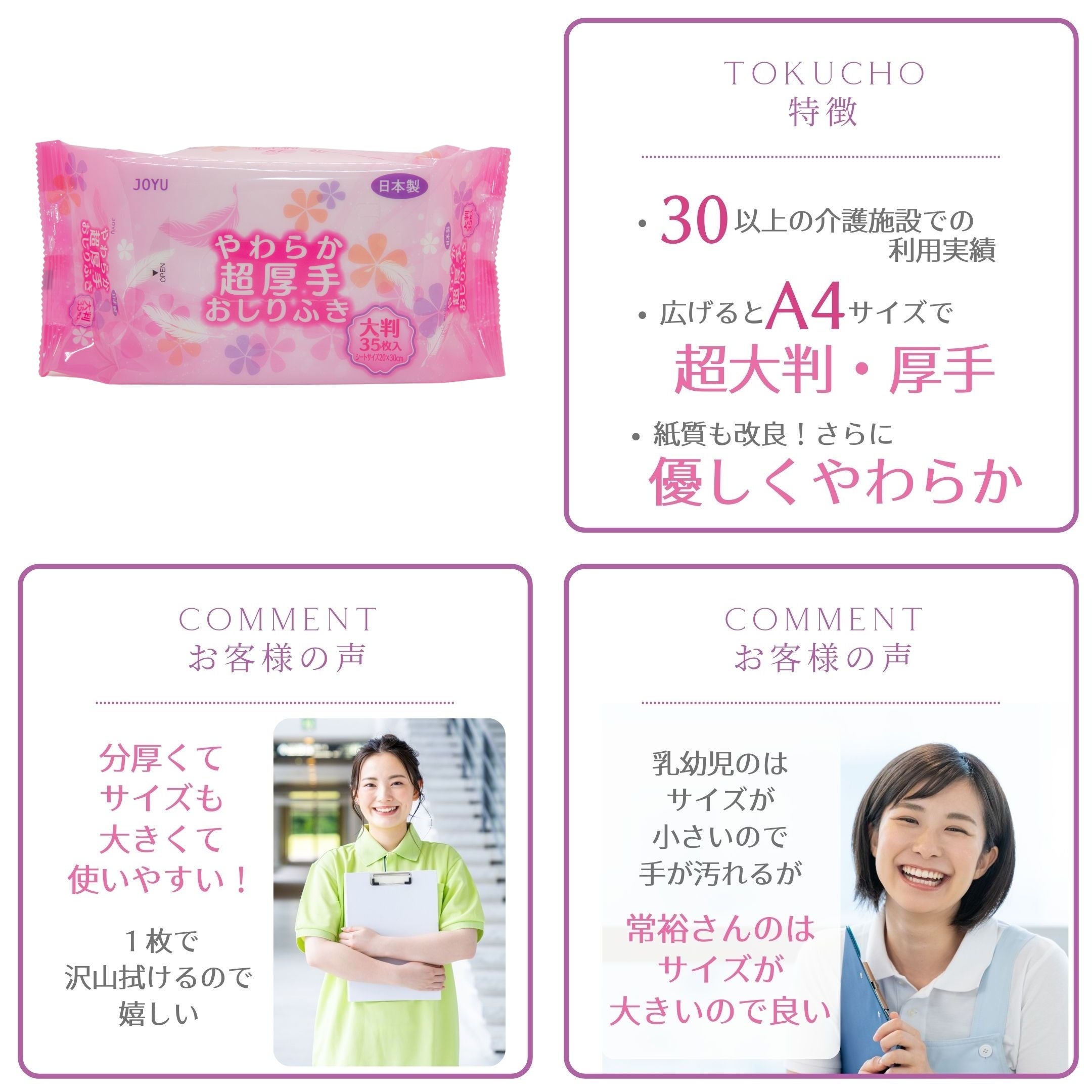 ◾️大人用介護向け やわらか超厚手おしりふき ノンアルコール 無香料 エンボスシート 大判35枚入り