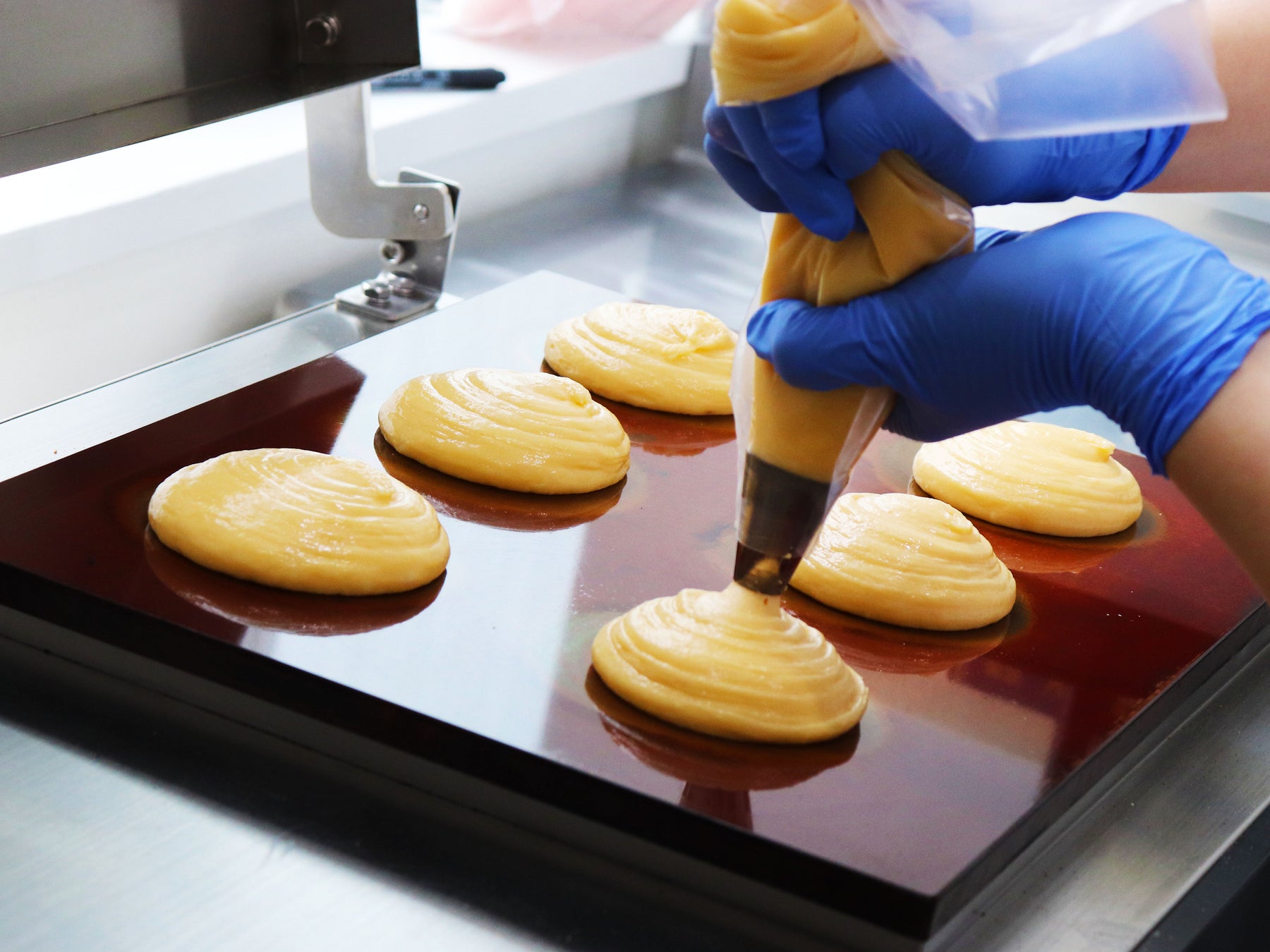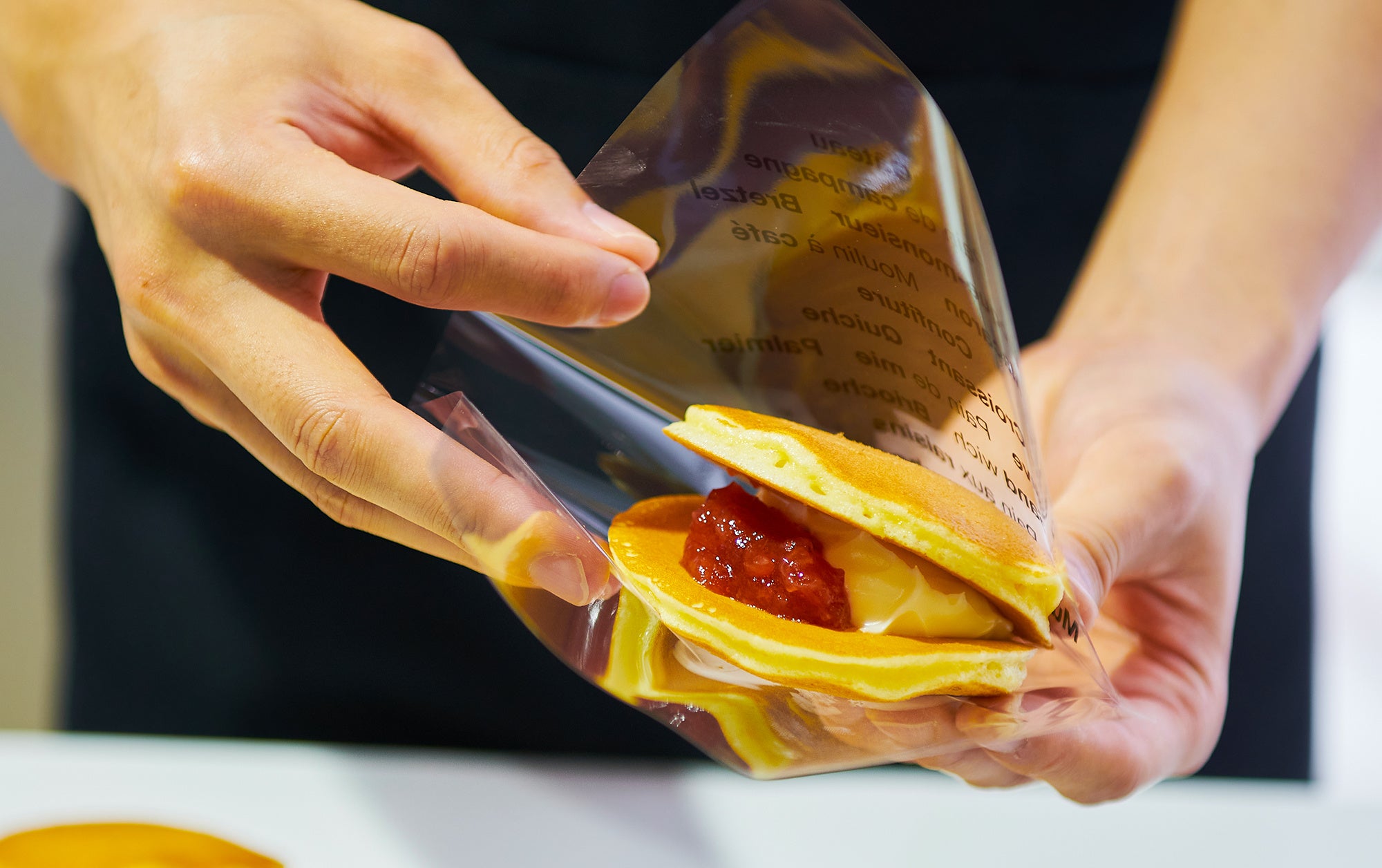 パンケーキ、どら焼専用什器「卓上パンケーキクッカー」だけでなく、レシピやミックス粉・フィリングなどの原材料を提供するシステム「Cook to Order」を提案。機器、原材料を取り扱う全国各地の商社を通じて販売することで、新たにフードビジネスを始める人へ、包括的なサポートで開業までのハードルを下げる。