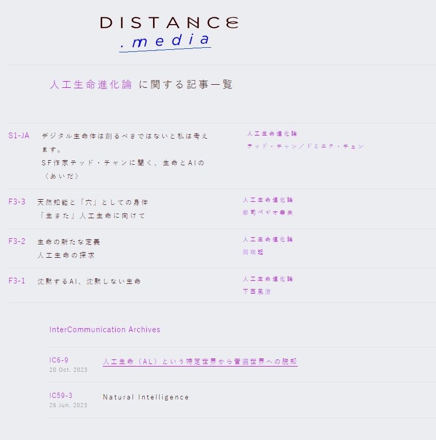 特集 「ALIFE 生命とAIのあいだ」https://distance.media/
