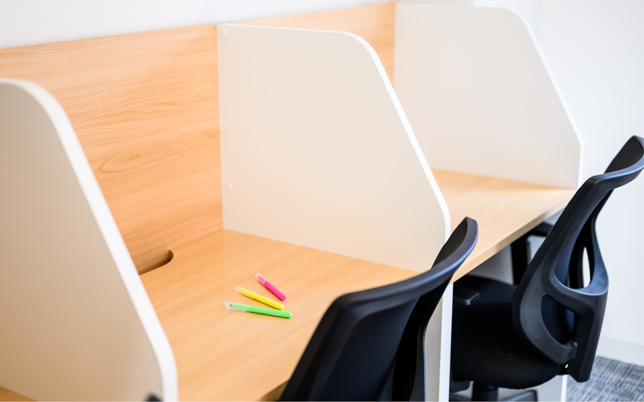 勉強したいけれど場所がないという方へ、駅近ロケーションで集中して勉強できる空間を提供します。清潔で静かな室内はもちろん、お客さまが安心して勉強できるよう防犯カメラ・スマートロックなど、セキュリティにも力を入れています。