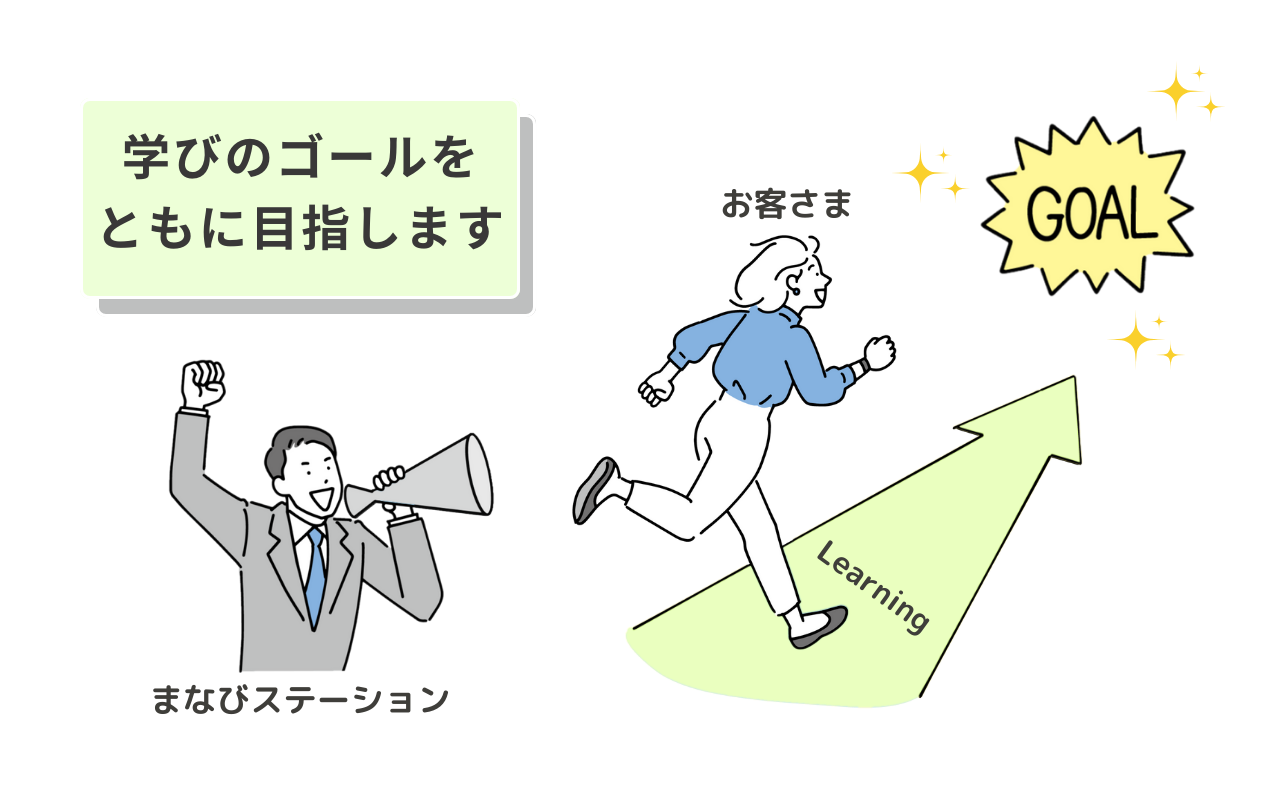 そのため、まなびステーションは場所の提供に留まらず、学習プロセス全体に支援範囲を広げることで、お客さまの目標達成をより確実にするサポートを行います。