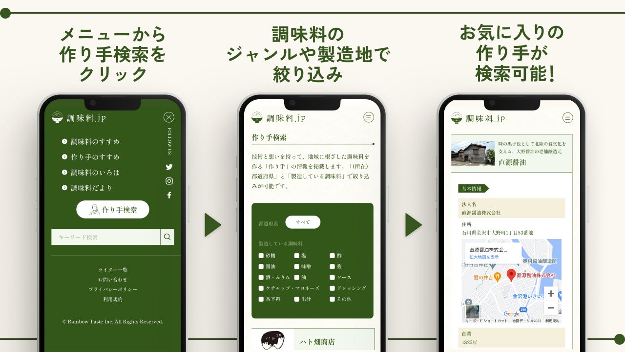 調味料ジャンルや製造地ごとに作り手を探せる検索機能も同時リリース
