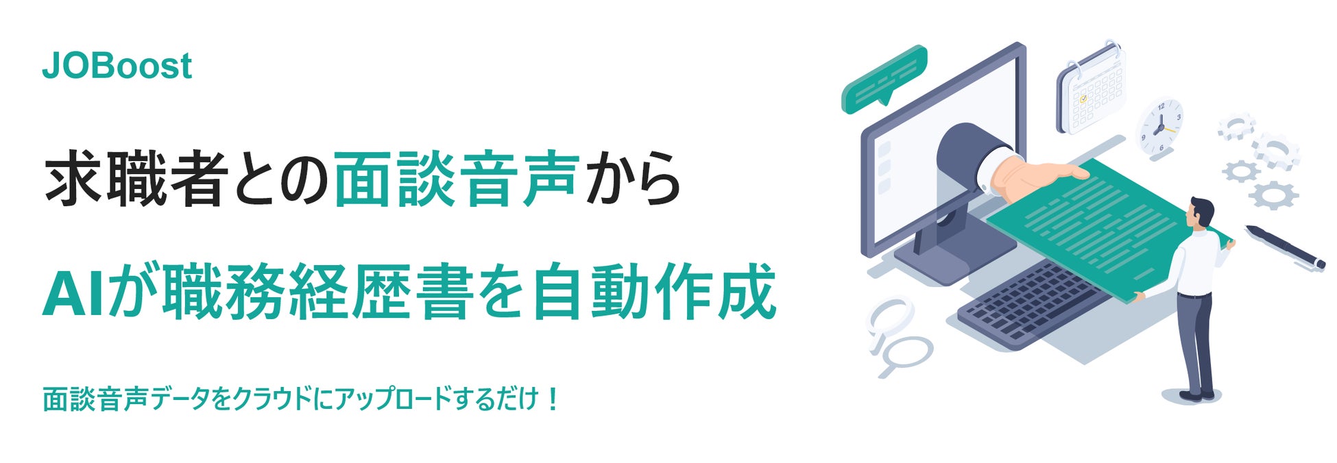 面談音声から履歴書・職務経歴書を自動生成するAI「JOBoost」、累計利用件数3000件を突破。