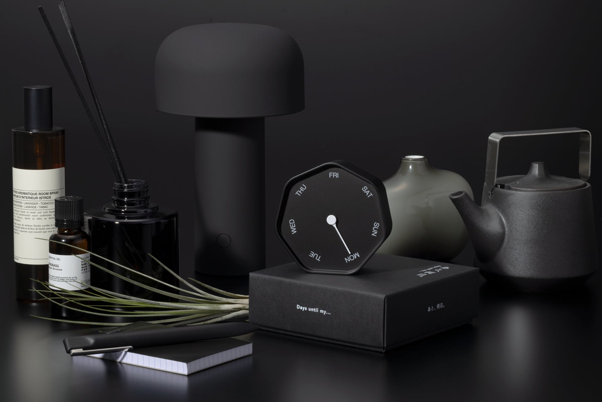 「あと、何日。」は一週間で針が一周する、従来の時計とは異なる視点から時を刻む置時計です。