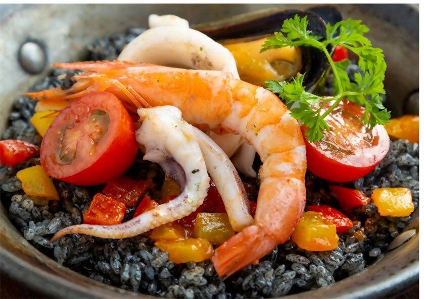 ・自慢のライスには濃厚なイカスミをふんだんに使用しました。