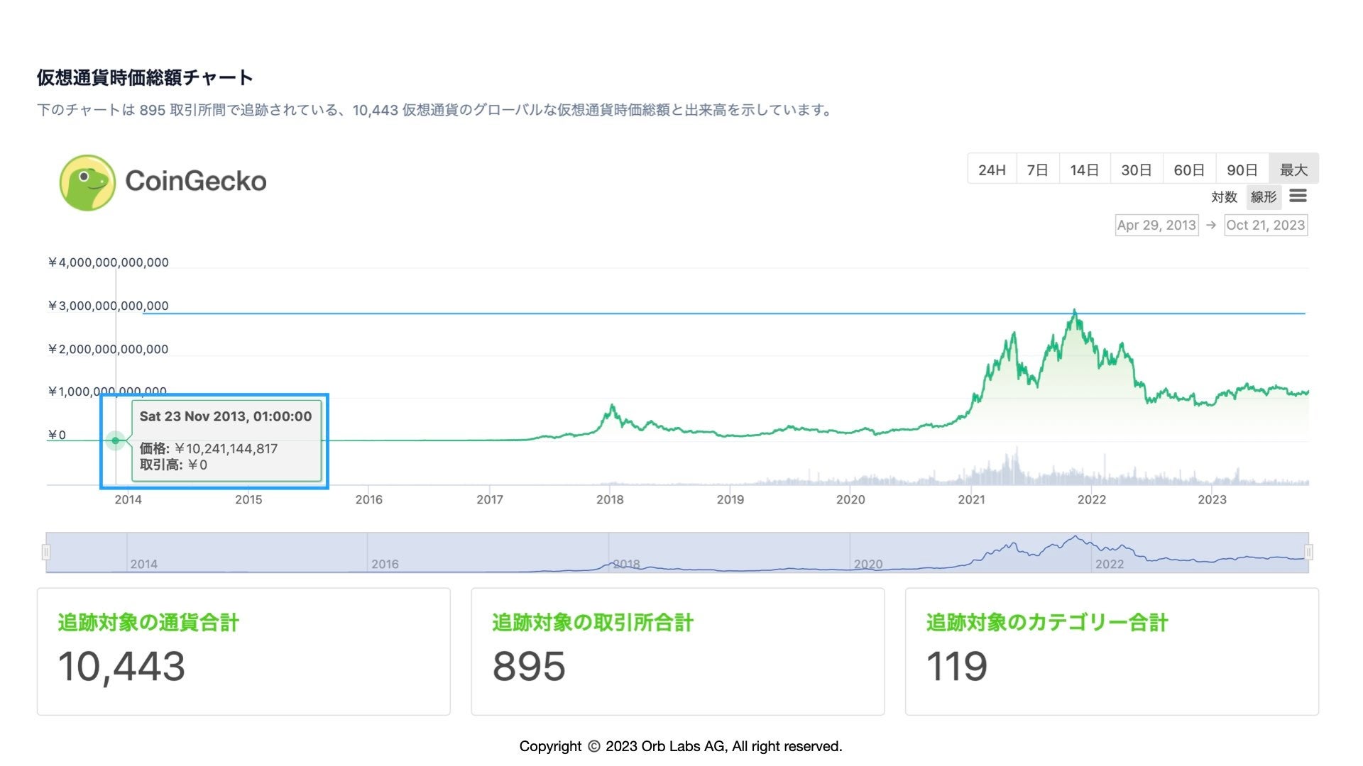 ブロックチェーン市場の急成長ぶりについては、2009年に誕生したビットコインをスタートラインに、主要メディアなどで取り上げられ世界的に注目を集め出した2013年11月時点で1兆円程度だった市場規模が、2021年11月には300兆円を超え、9年で市場規模が300倍(単純計算で年平均33.3倍の成長力)になっている点から明らかなように、今、テック産業の中で最も急成長している市場になります。