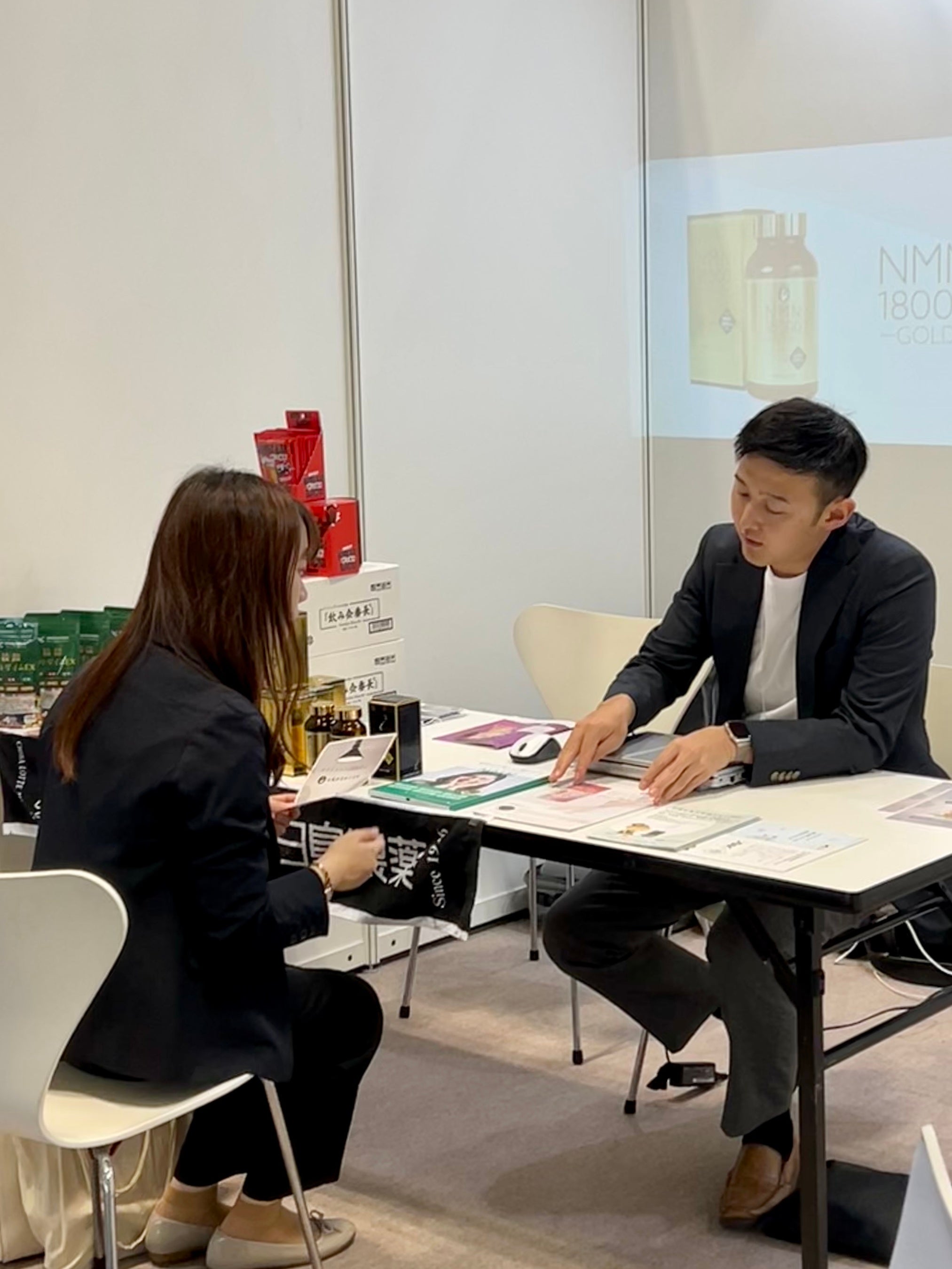 会場には3日間で合計33,829名の来場者が集まり賑わいを見せる中、数少ないサプリメントOEM業者として出展し、美容クリニック・エステサロン・接骨院・フィットネスジム等のお客様にご来訪いただき、各店舗のお客様層の潜在ニーズに合うオリジナルサプリメントのOEM提案をさせていただきました。