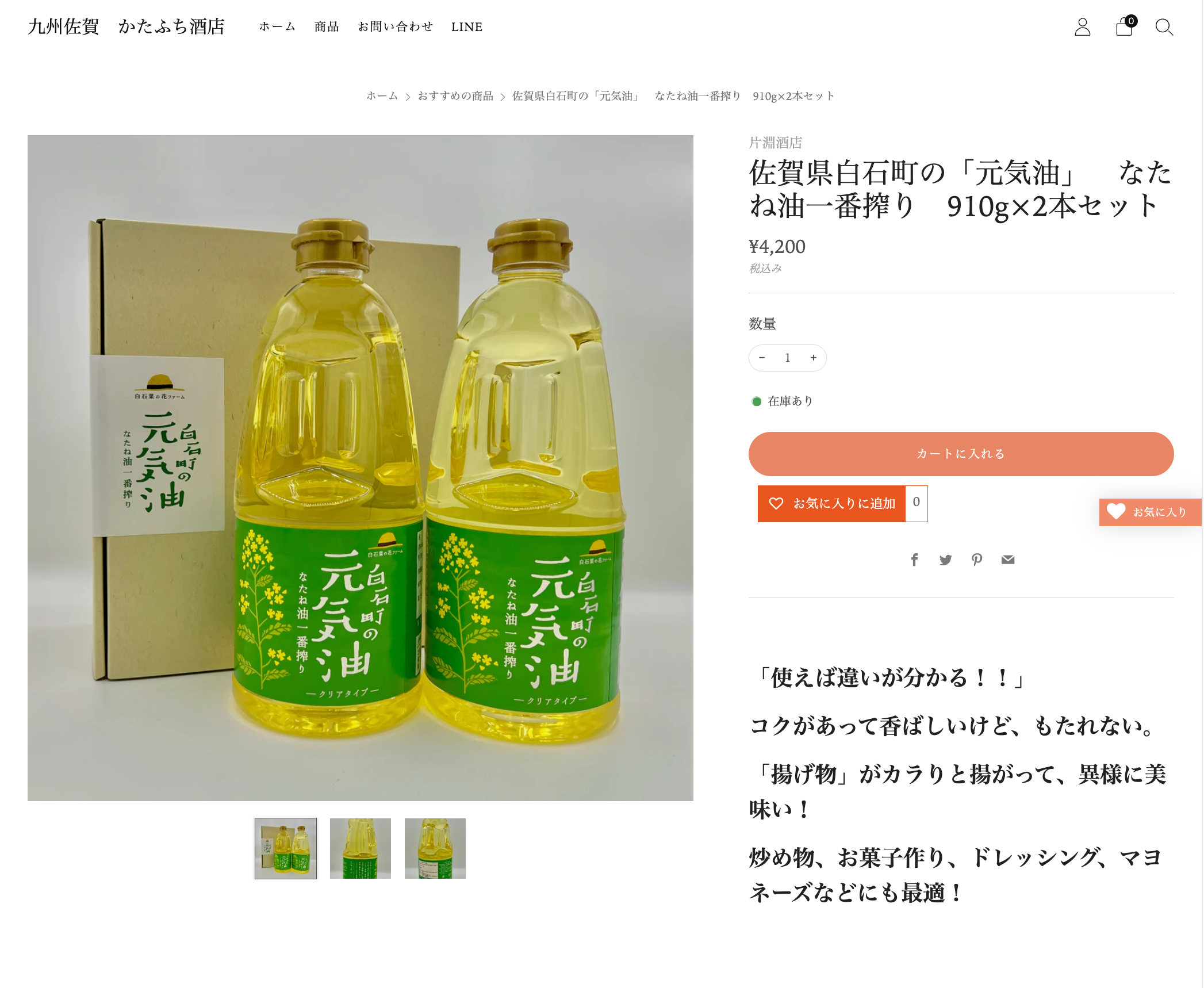 加えて、佐賀の酒蔵で日本酒製造の副産物として生じる酒粕を原料とした「赤酢」や、佐賀県白石町産の菜種を原料とする高品質な「菜種油」なども広めてまいります。