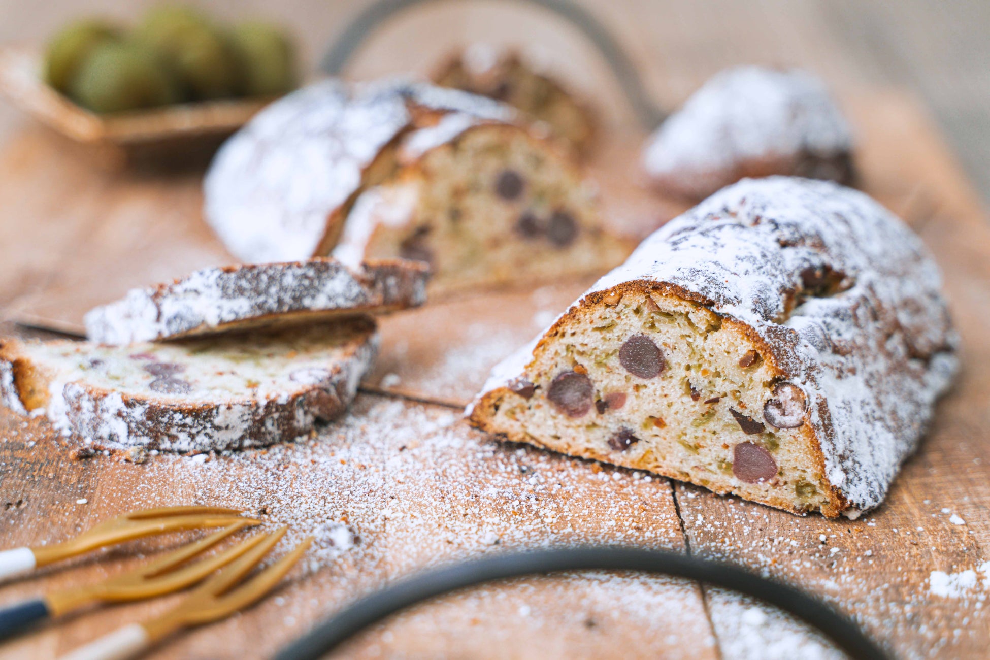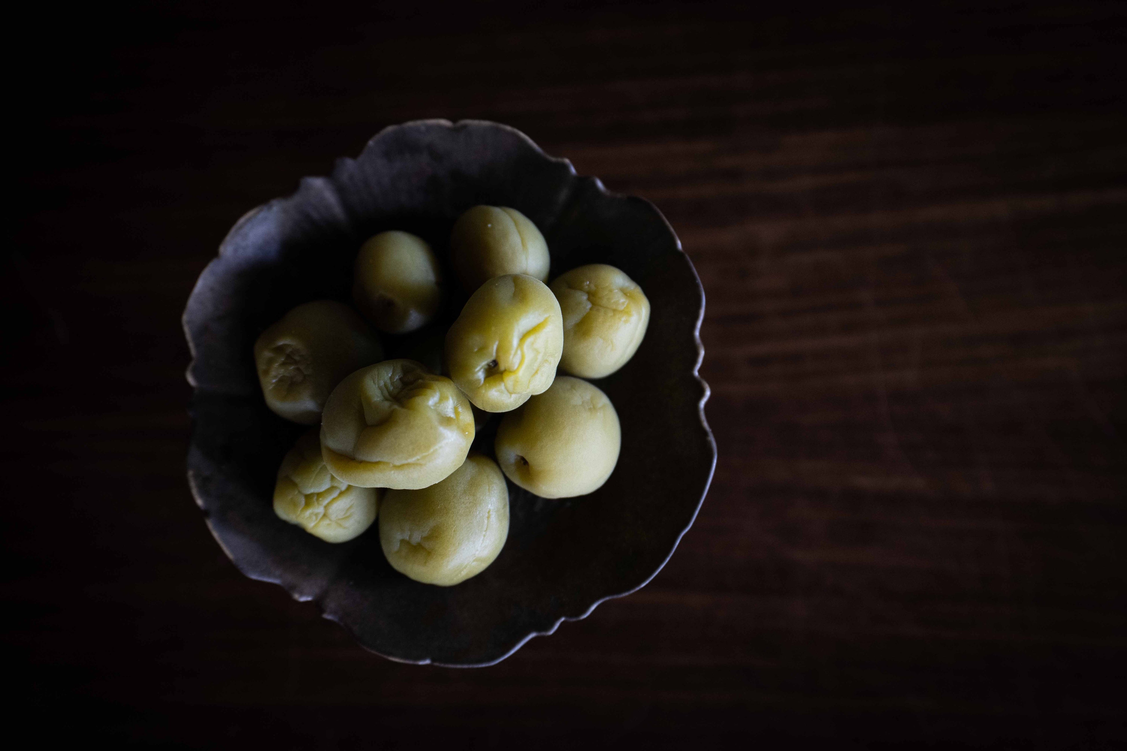 梅の実は100%京都・青谷産にこだわり、焼酎の代わりに日本酒で仕込むことでどんな料理にも合わせやすい梅酒づくりをされているそう。梅の実は梅酒の出荷前に取り除かれてしまうということでサンプルをいただきシュトレンに焼き上げてみると、 和を感じられる仕上がりに。本場ドイツではラム酒に漬け込まれたレーズンが使われるのに対し、八方良菓では日本酒に漬け込まれた梅の実を使用することで京都らしいシュトレンを追求しました。