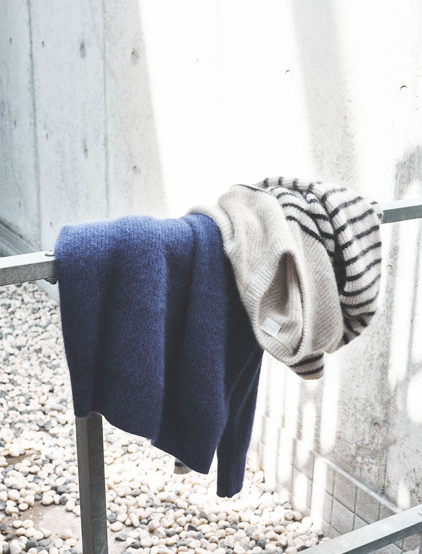 今回のイベントではブランドの世界観を見せることを目的に、ブランドの16年間に渡る歴史や24年カプセルコレクションの立ち上がりイメージブックなどを展示するとともに、これまで主力商材としてきた中軽衣料ニットのほか、ニット小物とニットアウター(小物とアウターで合計8~10型)を新たに企画製造して加えていますのでご期待ください。