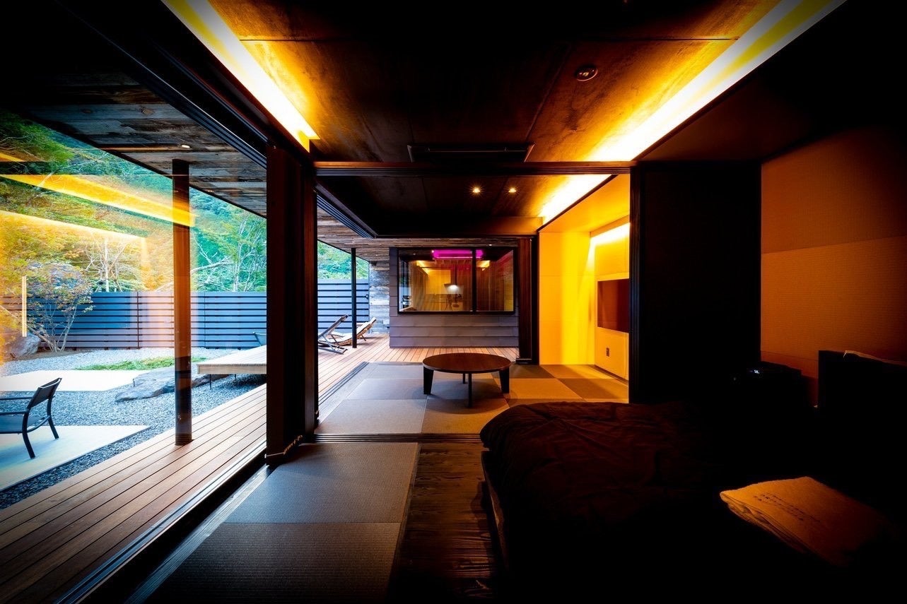 静岡県静岡市の新東名新静岡ICから車で約40分、国民保養温泉地に指定された梅ケ島温泉郷に、個室サウナと温泉の付いたヴィラ(旅館ホテル)「梅ケ島ドライブイン&サウナヴィラ」を2023年11月1日(水)に新規オープンしました。