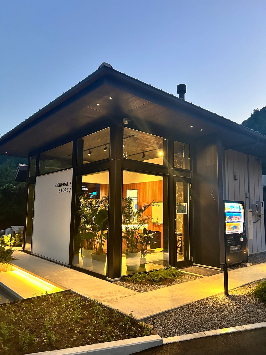 1日2組限定の宿泊棟と、梅ケ島産にこだわったテイクアウト飲食の提供や静岡県内のお土産品が購入できる売店棟の2棟からなる「梅ケ島ドライブイン&サウナヴィラ」です。