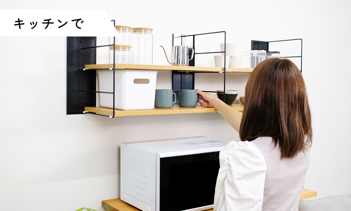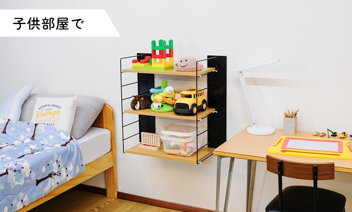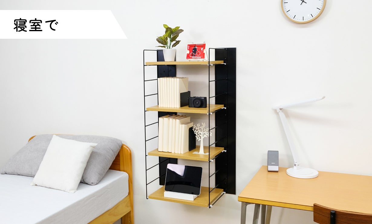 お部屋の広さや用途に合わせて取り付けスタイルを選べるウォールシェルフです。