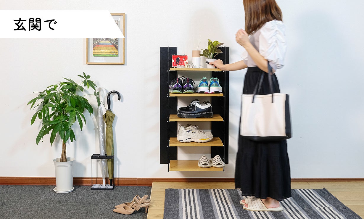基本的なセット商品をご用意しておりますが、さらに追加パーツを購入することで壁のスペースに合わせて収納スペースを上下左右に拡張可能です。