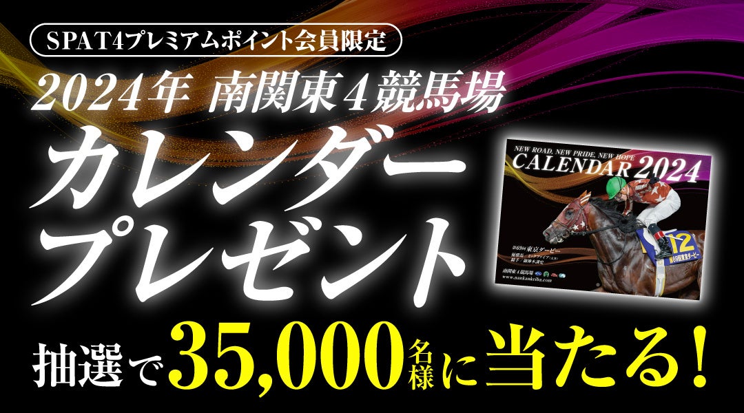SPAT4プレミアムポイント会員様を対象に、抽選で35,000名様に2024年南関東4競馬場カレンダーとカレンダー表紙デザインのクリアファイルをセットでプレゼント!