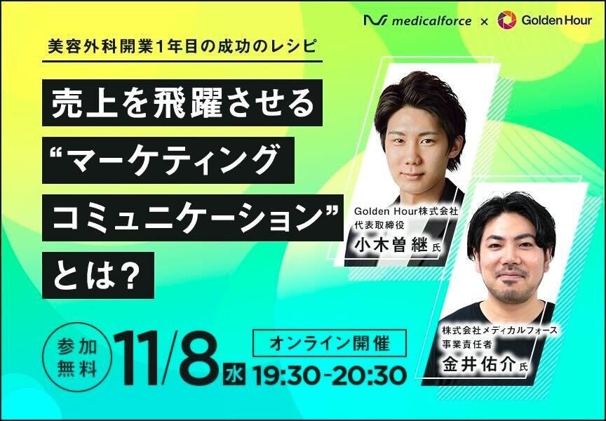 【11/8開催ウェビナー】「美容外科開業1年目の成功のレシピ 売上を飛躍させる“マーケティングコミュニケーション”とは?」に、クリニックの外部CMOも務めるGolden Hour 株式会社代表が登壇