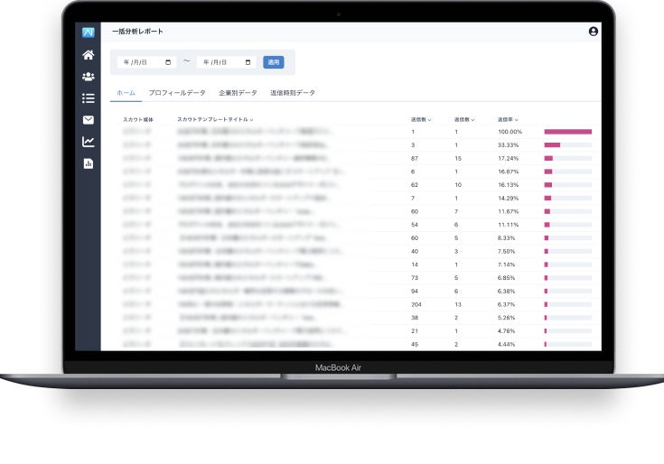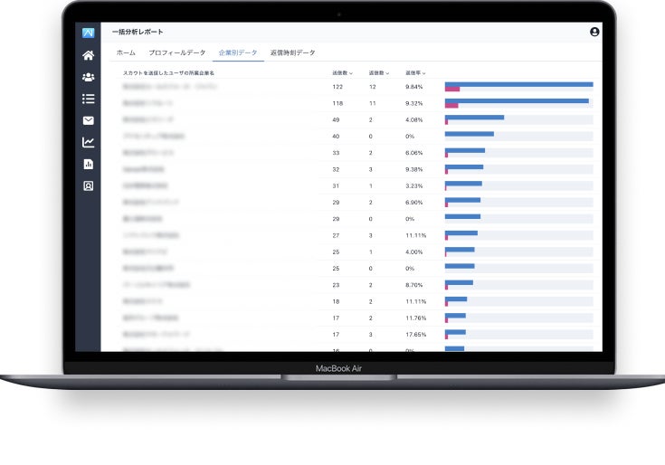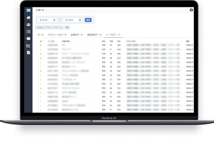 ユーザが所属する企業ごとのスカウト配信数・効果を分析し、スカウト戦略を立案します。