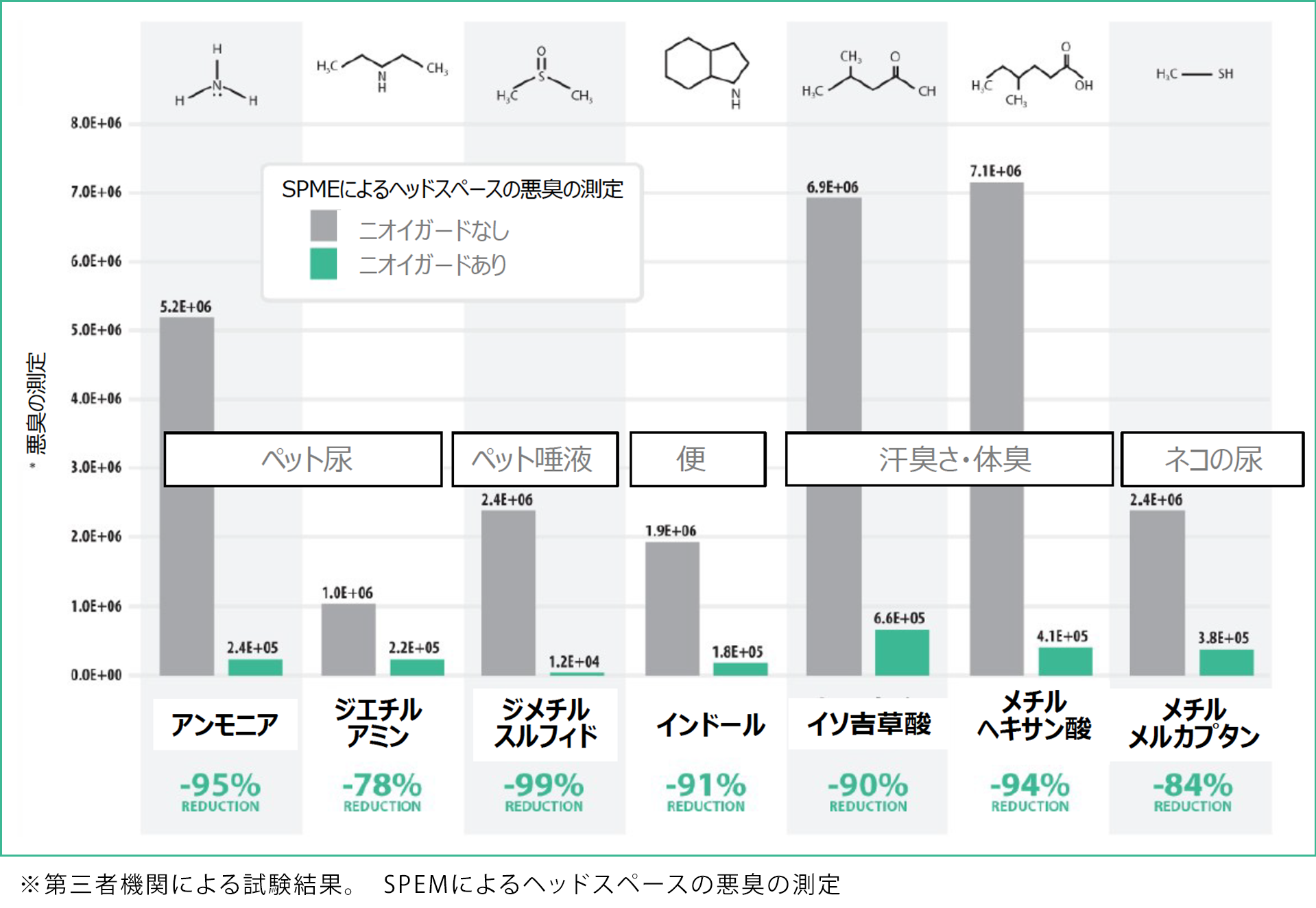 (1)尿のアンモニア臭を約95%消臭