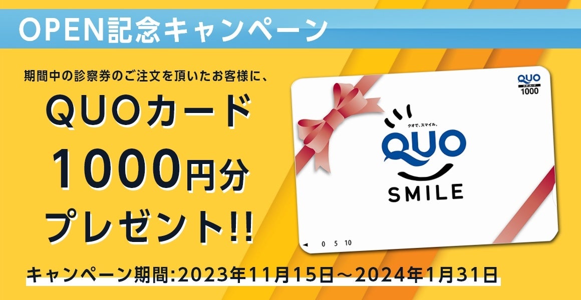 今回、サイトオープンを記念し、該当期間中に診察券のご注文を頂いたお客様を対象に、QUOカード1000円分をプレゼント致します。