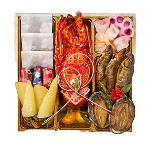 ・梅昆布巻 ・友禅包み 赤・友禅包み 藍 ・極上数の子・数の子松前漬け ・伊勢海老・宮崎県産 完熟金柑