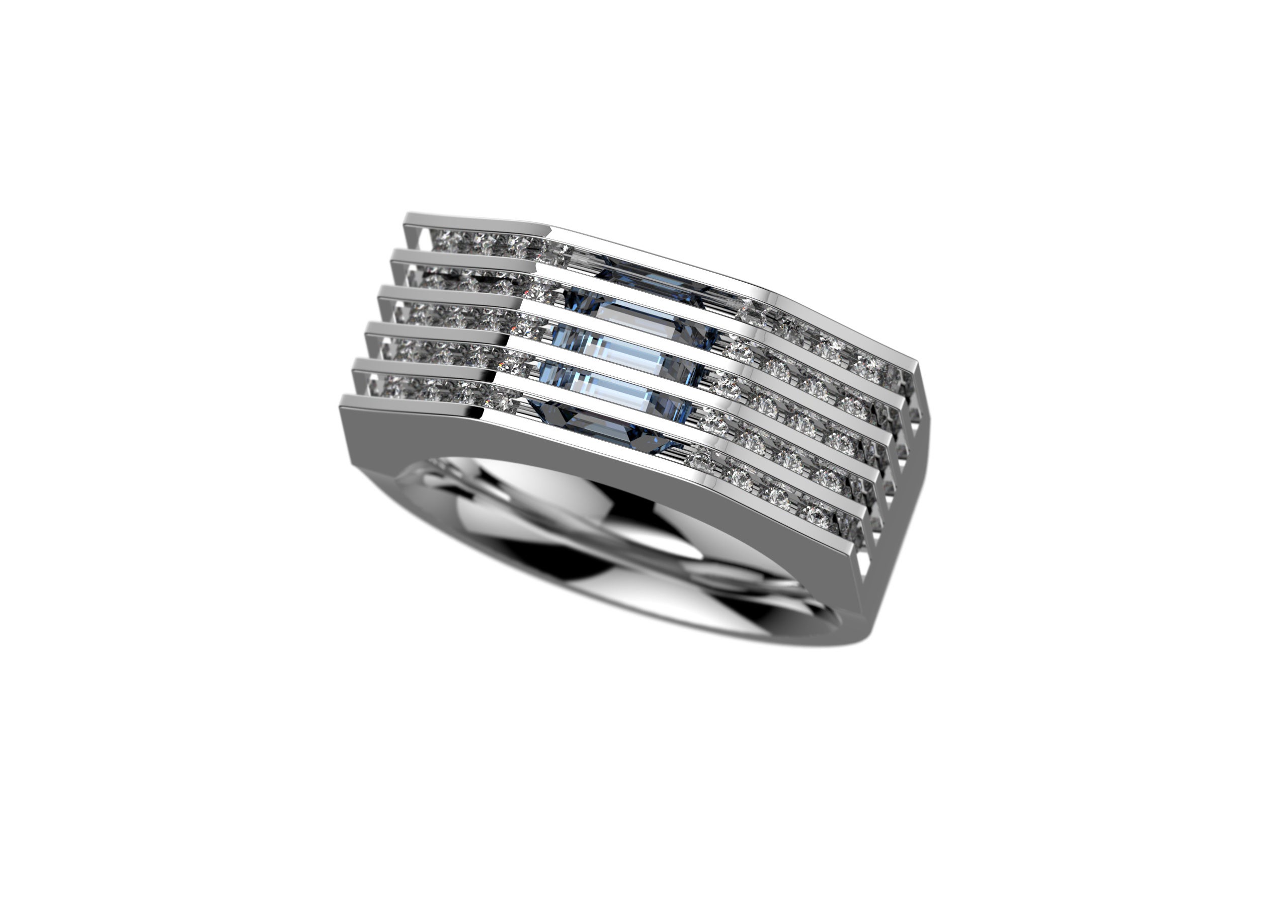 実物資産として注目されるカラーダイヤの中でも希少価値が高いピンク、レッド、ブルーを展開。ダイヤを守る隠れ留め技法を用いた碧志は、高額ダイヤを気楽に装着する「アセットジュエリー」を提案します。