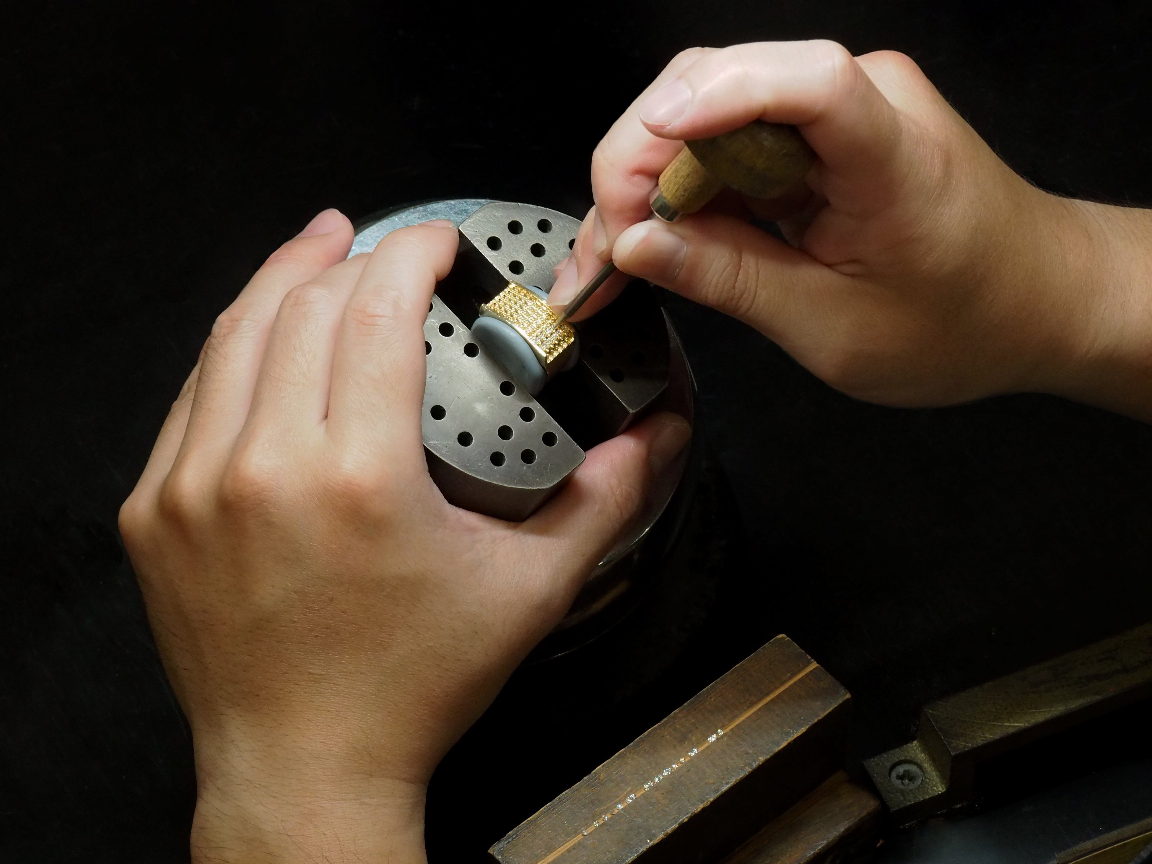 地球上で最も硬度が高い鉱物であるダイヤモンドですが傷や割れとは無縁ではありません。留め方や衝撃により落下するケースもあります。しかし熟練者の中でも傑出した技術力を持つ職人のみが施す隠れ留め技法の存在により、カラーダイヤモンドの輝きを秘めた美しき金城鉄壁のジュエリーを誕生させることができました。またその技術は被服への配慮も兼ね合わせ、ダイヤモンドを留めるツメが剥き出しにならないことにより繊細な生地への引っかかりなども防ぎます。