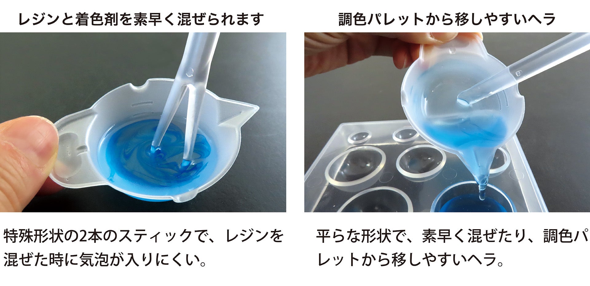 レジンと着色剤を混ぜる際に、気泡が入りにくいスティックが新登場。