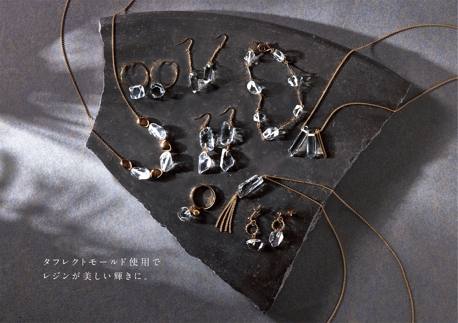パジコがレジンのモールド用の原料として新たに「タフレクト™」を開発。そのタフレクトで成形したモールド「タフレクトモールド™」が新登場。第一弾は、アクセサリーに最適な小さめの12種類の鉱物。特殊製法によるリアルな鉱物で、美しい輝きの仕上がり。
