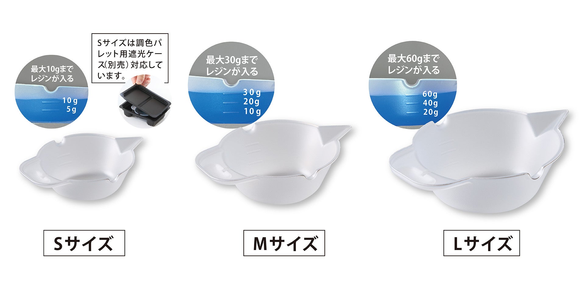 たくさんのカラーレジンを作ることができる、中・大サイズも新登場。