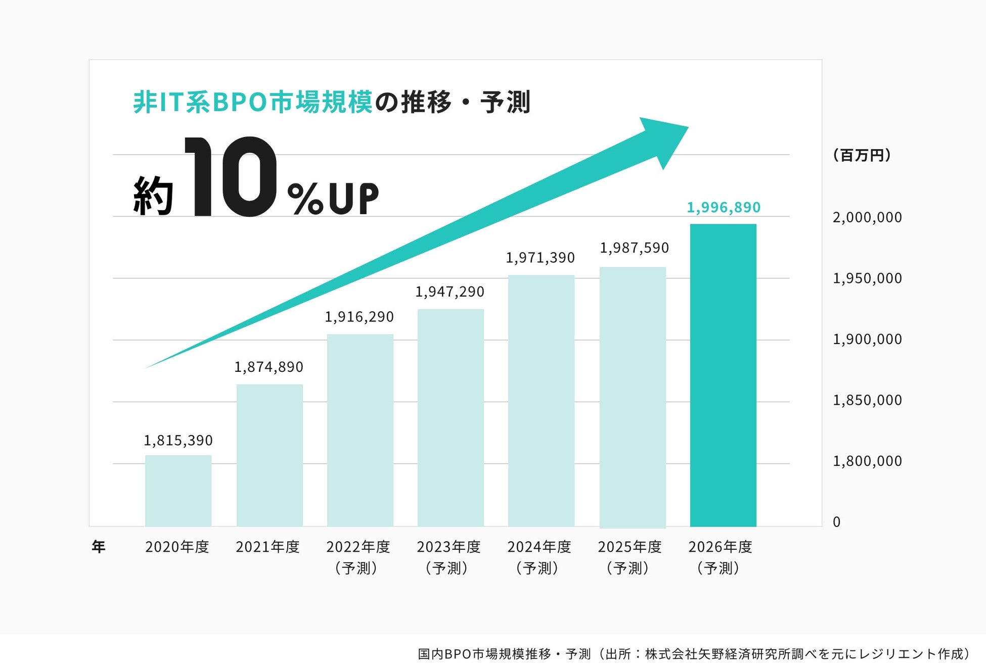 このような背景を受け、近年、定型業務となるバックオフィス部門そのものを外部に委託し、貴重な人的リソースをコア業務に集中し競争力を強化するバックオフィスBPOの活用が加速しています。特に中小企業の採用においては、質の高いバックオフィス人材の採用がますます困難になっており、この傾向は、今後さらに増加していくと予測されています。