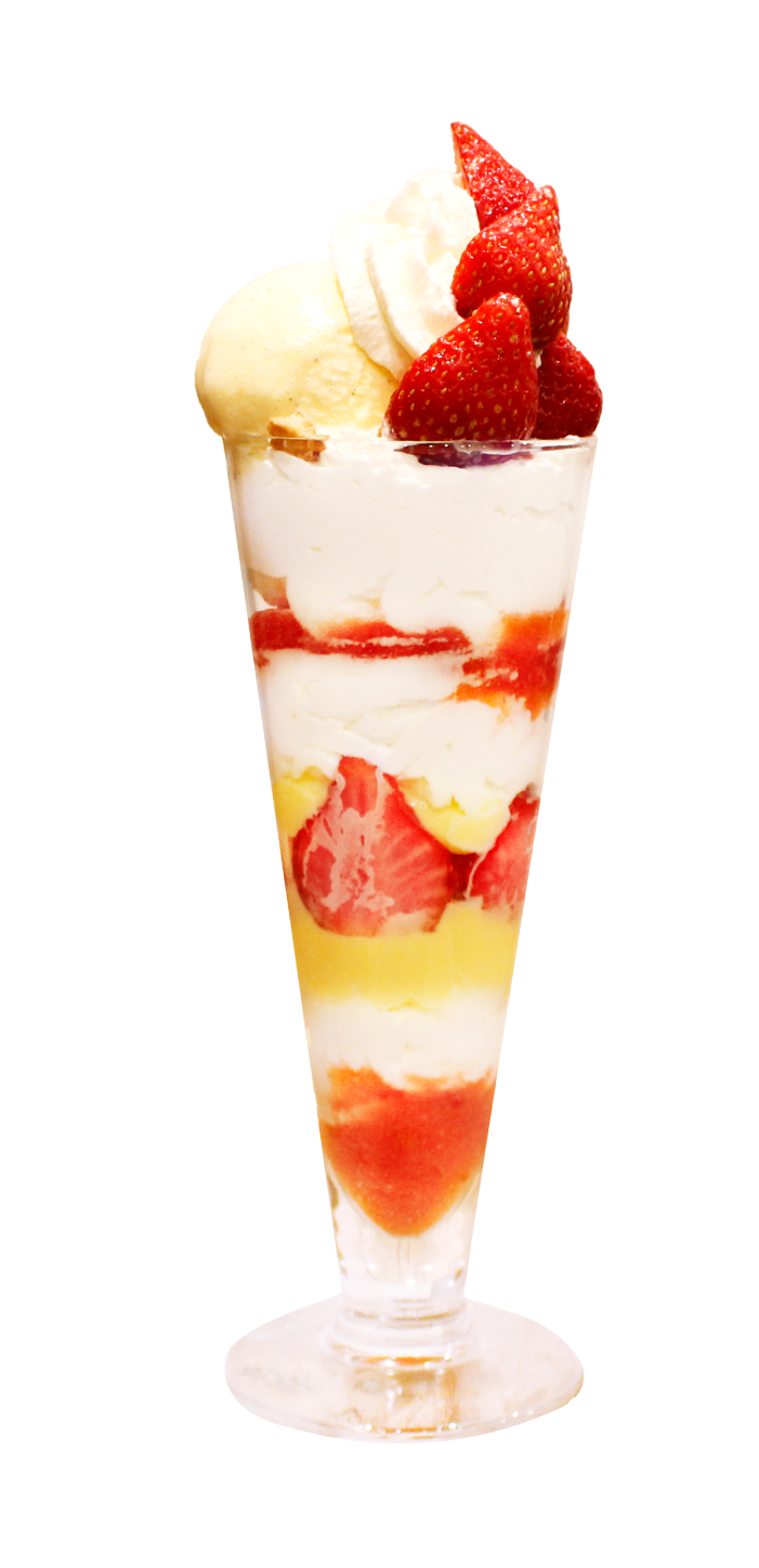 商品説明:あまおうの素材の味を、上品ないちごソースと生クリーム、カスタード、アイスやナッツなど様々な味わいで楽しめる贅沢パフェ。