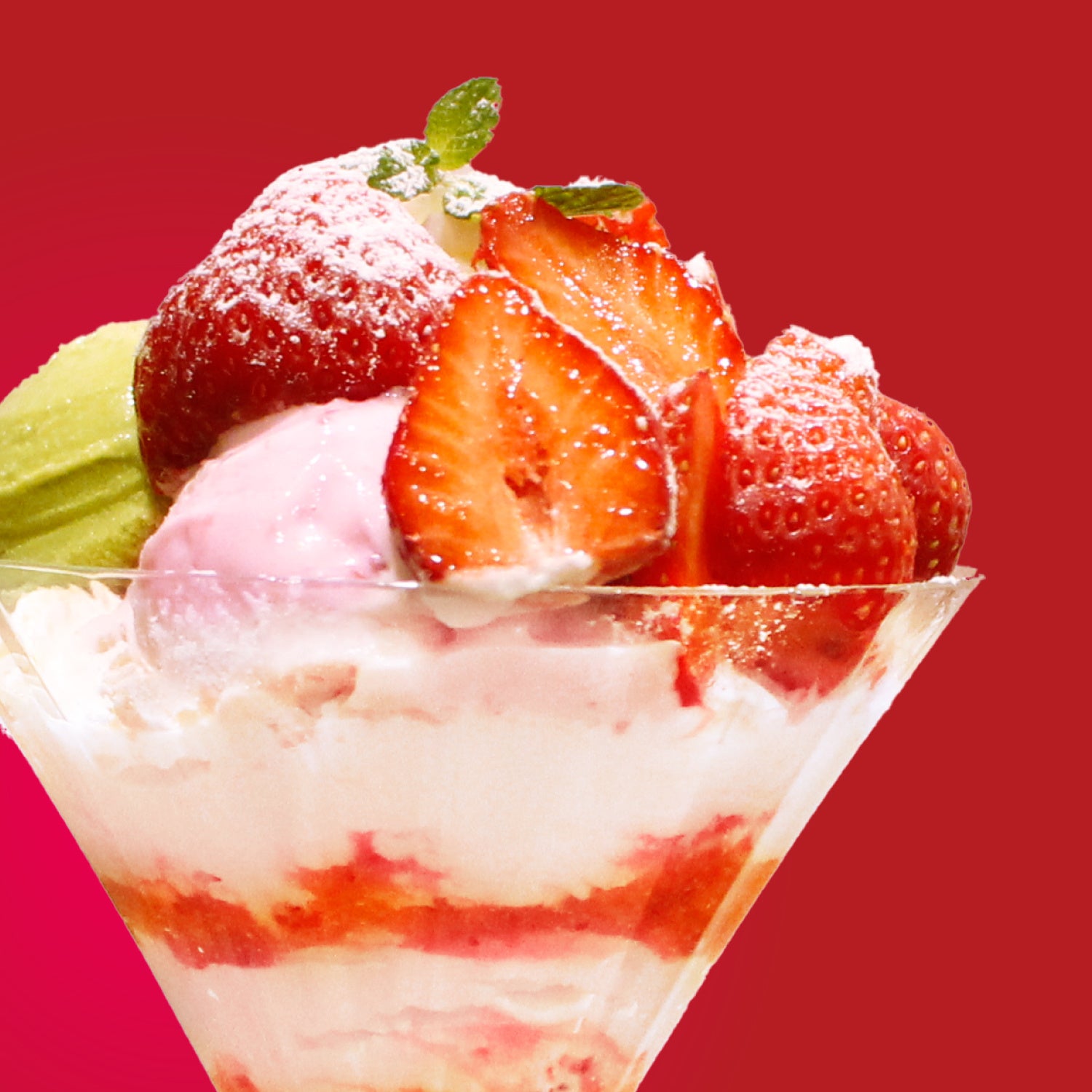 商品説明:【季節限定のスペシャルパフェ】ストロベリーアイスの爽やかな甘さが、クリーミーなピスタチオアイスと調和し、口当たりは絶妙になめらか。あまおうの爽やかな酸味がアクセントとなり、一口ごとに異なる味わいが楽しめます。