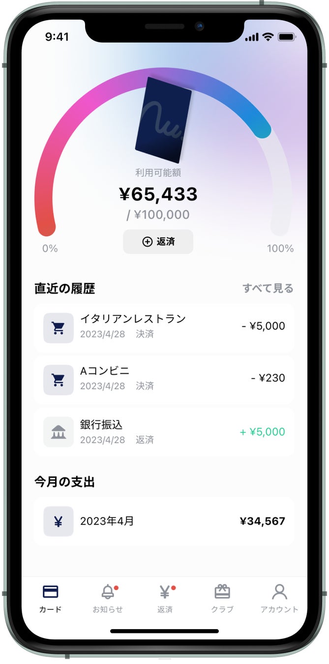アプリ起動時の生体認証や、不正利用防止機能など安全性はもちろん、クレジットカードを初めて利用する方も安心して利用できるよう、好きなタイミングで可能な返済※2やスマホベースのUIを特徴としています。