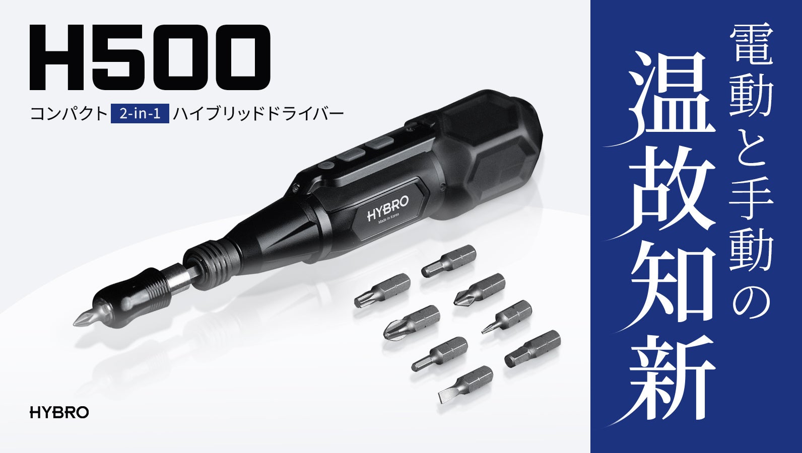 従来のプロ用電動ドライバーの重くて、大きくて、使いにくい、というイメージを払拭し、「パワーはプロ仕様なのに、非常にコンパクトで初心者がDIYでも使える」次世代のハイブリット電動ドライバーを発表。現在世界24か国で累計販売50万台を突破した、大好評のHYBROシリーズから最新作H500がついに、日本クラウドファンディングサイト「Makuake」にてプロジェクト を開始しました。