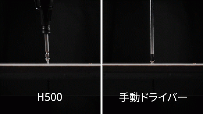 一般的に使われるL字型の電動ドライバーは、電動作業後に手回しドライバーに持ち替える必要がありますが、H500なら、ボタン一つの操作で仕上げ作業まで完璧に。