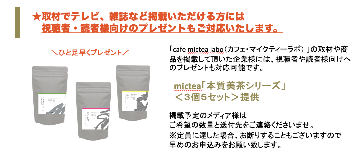 広報担当(田部・栗原) メール:mictea.pr@gmail.com