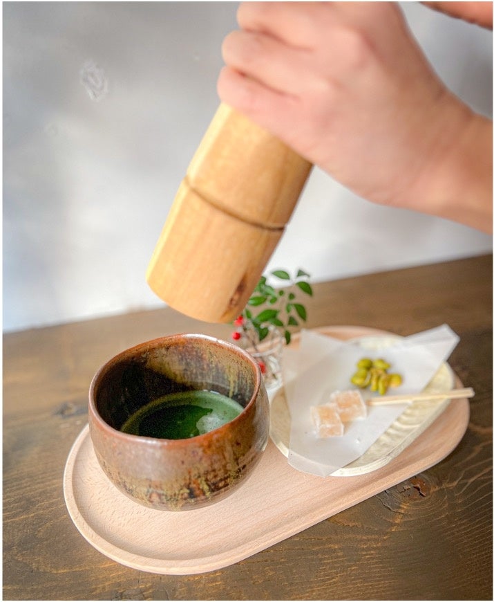 福岡といえばお茶の名産地。中でも八女抹茶に様々な体の悩みを改善する妙薬でもある玄米を焙煎したものをミルで後入れ。健康への意識が高まる昨今、他にない新しい抹茶のあり方を提案。